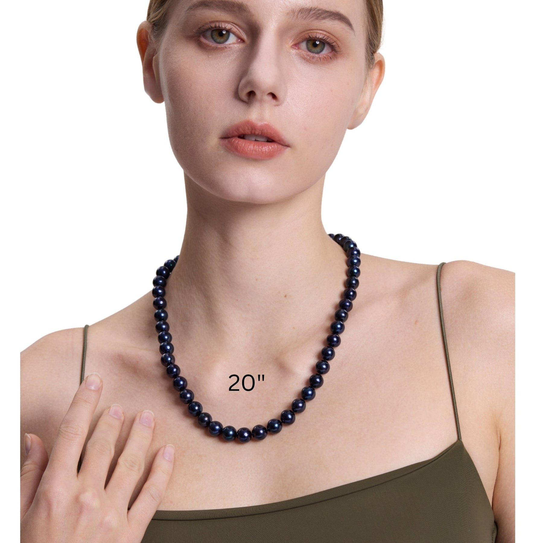 This gorgeous chunky black pearl necklace features huge 10-10.5mm cultured freshwater pearls. The pearls are the most desired and most valuable round to the eye shape. Pearl surface is lightly blemished. Necklace clasp: sturdy sterling silver pea safety clasp. Comes in a luxury jewelry presentation box. Buy this gorgeous pearl necklace today!